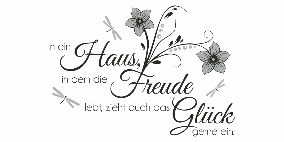 Wandtattoo In ein Haus, in dem die Freude lebt, zieht auch das Glück gerne ein