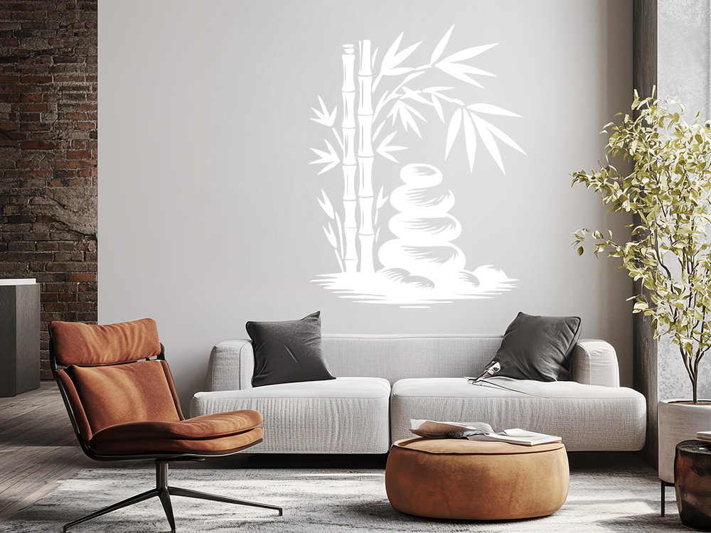 Wandtattoo Bambusstängel mit Zen Steinen