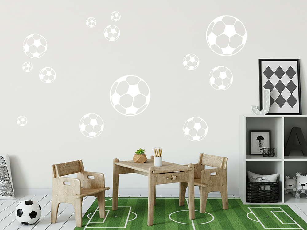 Für alle Fußball Fans ist dieser Wandsticker genau das Richtige! Das Fußball Set besteht aus 10 Stickern in drei unterschiedlichen Größen. Bei diesem Wandaufkleber lässt sich jedes Element einzeln anordnen, sodass Sie Ihre Wände ganz nach Ihrem persönlichen Geschmack gestalten können. Wählen Sie einfach Ihre Wunschfarbe aus und bestellen Sie dieses hochwertige Wandtattoo noch heute in unserem Shop.