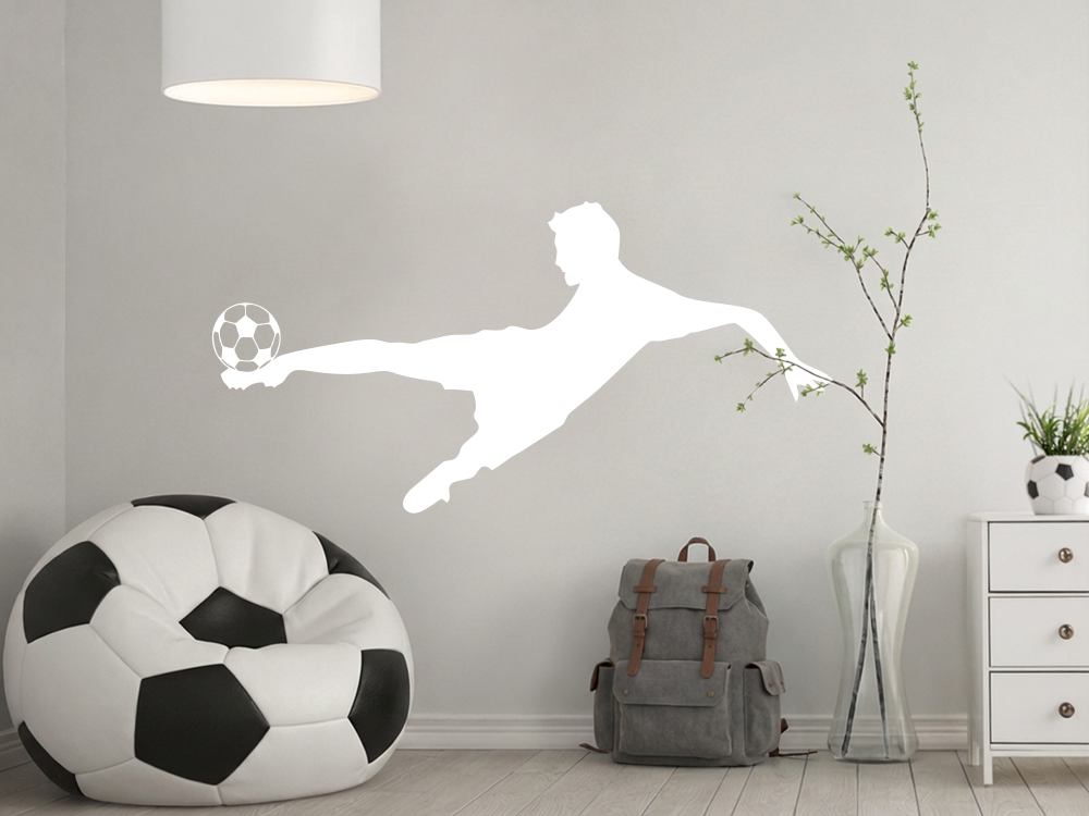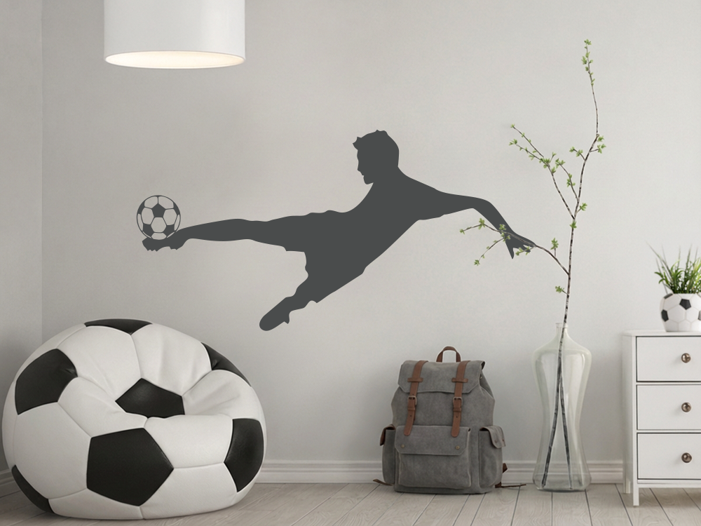 Falls das Kinder- oder Jugendzimmer bei Ihnen auch zu triste wirkt oder es noch eine kahle Wand gibt, dann können Sie diesen Wandaufkleber anbringen. Man sieht den abgebildeten Fußballspieler dabei, wie er ausholt um den Ball zu schießen – diese Pose bringt sehr viel Dynamik und Motivation mit sich, so dass Ihr Kind garantiert noch mehr Lust aufs Sport treiben bekommt. Aber nicht nur eine großartige dynamische Stimmung wird erzeugt, sondern das Motiv ist auch ein absoluter Eyecatcher, der Groß und Klein Freude bereitet. Ohne großen Zeitaufwand und Werkzeug lässt sich der Sticker an der Wand montieren.