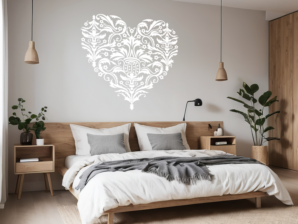 Dieses Ornament ist eine wundervolle Dekorationsidee für leere und triste Wände. Das Wandtattoo Liebesornament ist besonders im Schlafzimmer ein echter Hingucker. Es verleiht dem Raum ein gemütliches und heimeliges Ambiente und ist genau das Richtige für Verliebte. Mit nur wenig Aufwand lässt sich der Wandaufkleber Liebe an der Wand befestigen und kann bei Bedarf einfach wieder entfernt werden. Verschönern Sie Ihre Wände mit dem Wandtattoo Herz und sorgen Sie so für romantische Stunden im Schlafzimmer.