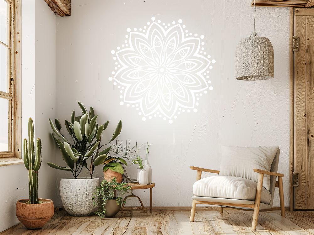 Sie möchten den Alltag vergessen und abschalten? Am besten gelingt Ihnen das mit einer wohnlichen und schönen Dekoration, durch die der Wohlfühlcharakter Ihres Zuhauses gesteigert wird. Warten Sie nicht länger, sondern kreieren Sie sich einen Wohnraum, der Sie glücklich macht. Ganz egal welchen Stil Sie bevorzugen – dieser dekorative Mandala Aufkleber passt garantiert zu Ihrer restlichen Wohnung. Sie werden sehen, welch inspirierende Wirkung das Mandala in Ihren vier Wänden versprühen wird. Auf der Wand angebracht sieht das Mandala aus wie aufgemalt. Das Wandtattoo wird aus einer hochwertigen, selbstklebenden Folie hergestellt und ist konturgeschnitten ohne transparenten Hintergrund.
