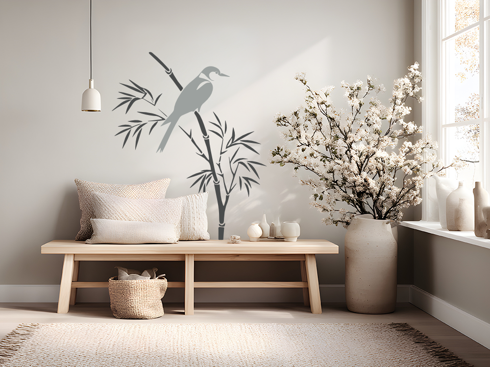 Wandtattoo Mehrfarbiger Bambuszweig mit Vogel
