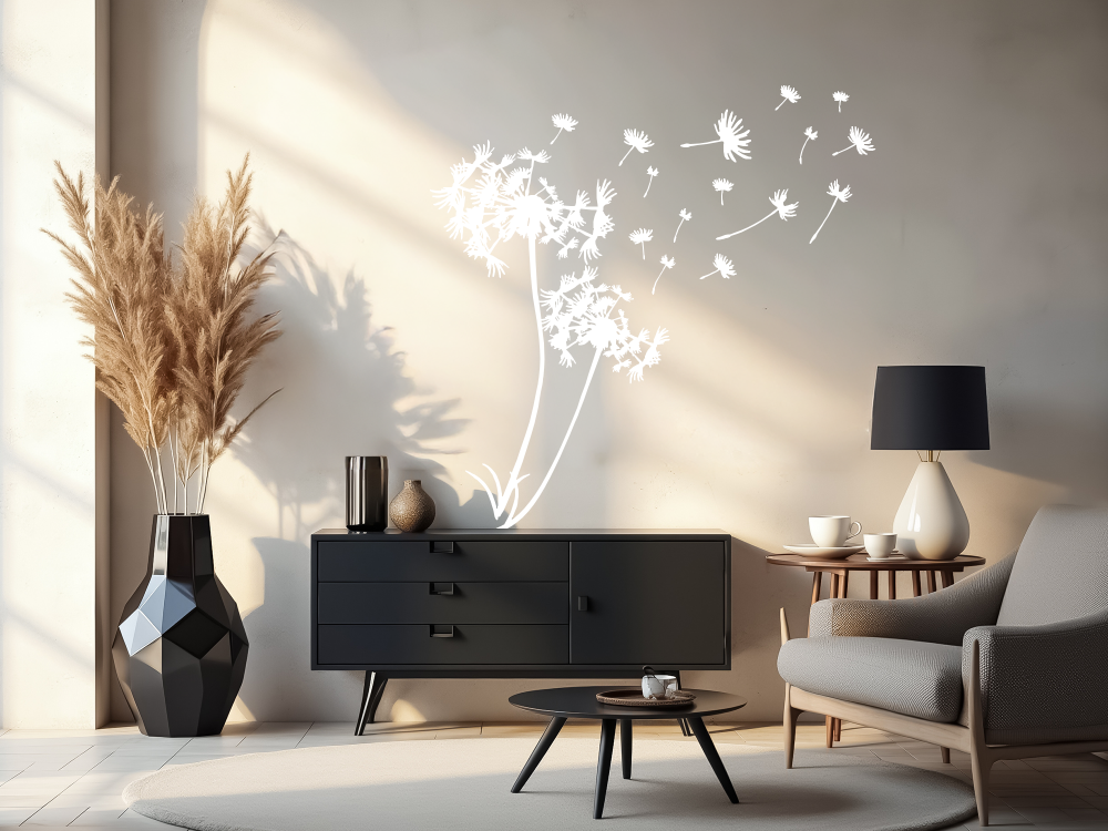 Blumen versprühen Ihren ganz eigenen Charme und können sogar triste Orte zum Leben erwecken. Bringen Sie diese Pusteblume an Ihrer Wand an und verspüren Sie täglich ein bezauberndes Gefühl, welches durch das florale Design entsteht. Eine tolle Dynamik erhält das kunstvolle Motiv durch die davonfliegenden Samen. Sie können beispielsweise eine ganz tolle Wirkung erreichen, in dem Sie das Wandtattoo hinter einer Kommode oder einem anderen Möbelstück hervorragen lassen. Mit diesem wunderbaren Design gelingt es Ihnen, jeden Raum einzigartig zu gestalten. Nicht nur Sie, sondern auch Familie und Freunde werden Sich an Ihrem kreativ eingerichteten Zuhause erfreuen.