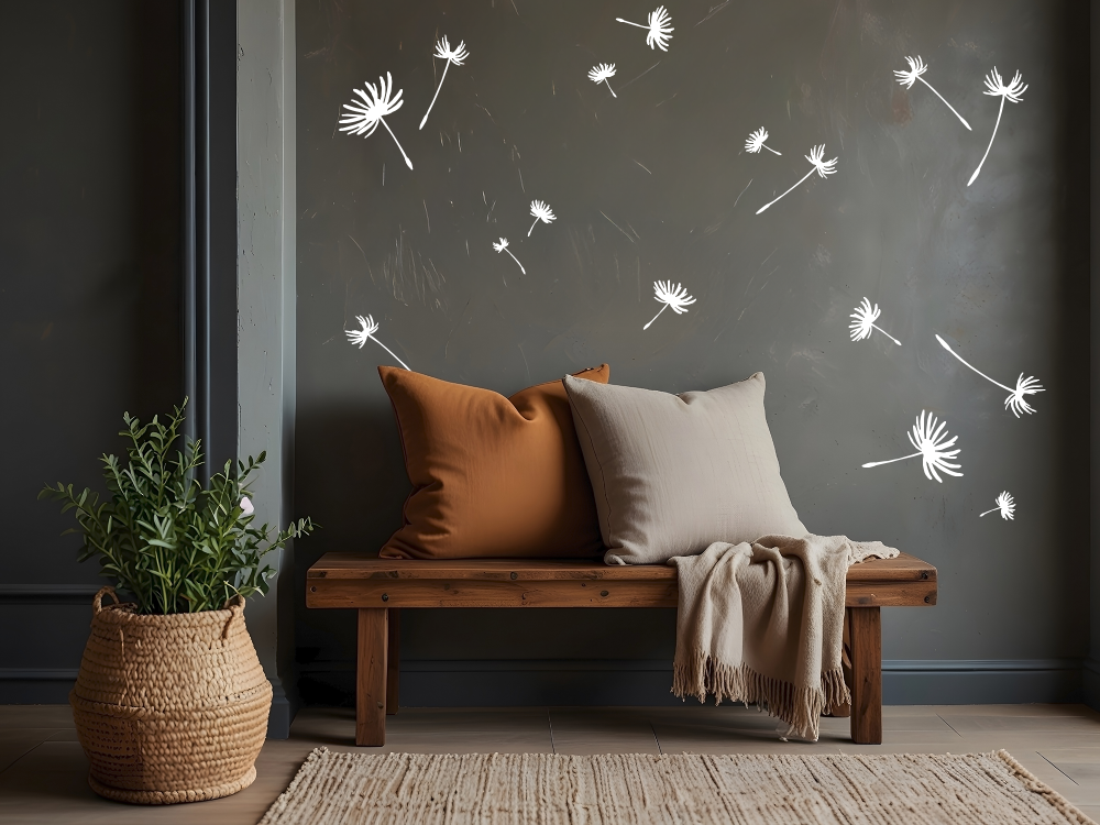 Gönnen Sie sich und Ihrem Zuhause doch mal etwas ganz Besonderes. Die davonfliegenden Samen der Pusteblume werden an Ihrer Wand für schicke Akzente sorgen und Ihren Raum optisch aufwerten. Durch die Möglichkeit, die Schirmchen ganz nach Ihrem Geschmack an der Wand anzubringen, erhalten Sie ein individualisiertes Zuhause. Mit einer schönen Dekoration schaffen Sie das gewisse Etwas, das Ihre Räumlichkeiten zu Orten der absoluten Wohnlichkeit macht. Das Wandtattoo lässt sich zum Beispiel wunderbar über Ihrem Sofa anbringen. Aber nicht nur dort, sondern in jedem Zimmer wird dieses Design zum stilvollen Hingucker werden. Im Nu können Sie sich so ein kreatives Zuhause zaubern.