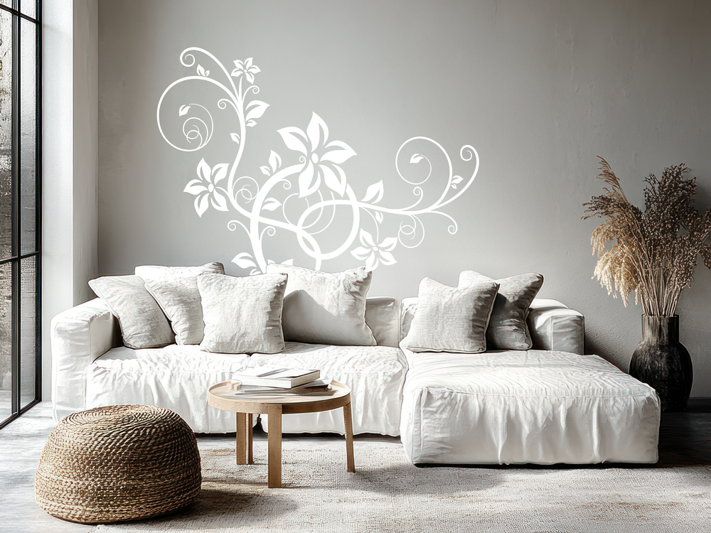 Verschnörkelte Blumenranke als Wandaufkleber zur individuellen Wandgestaltung