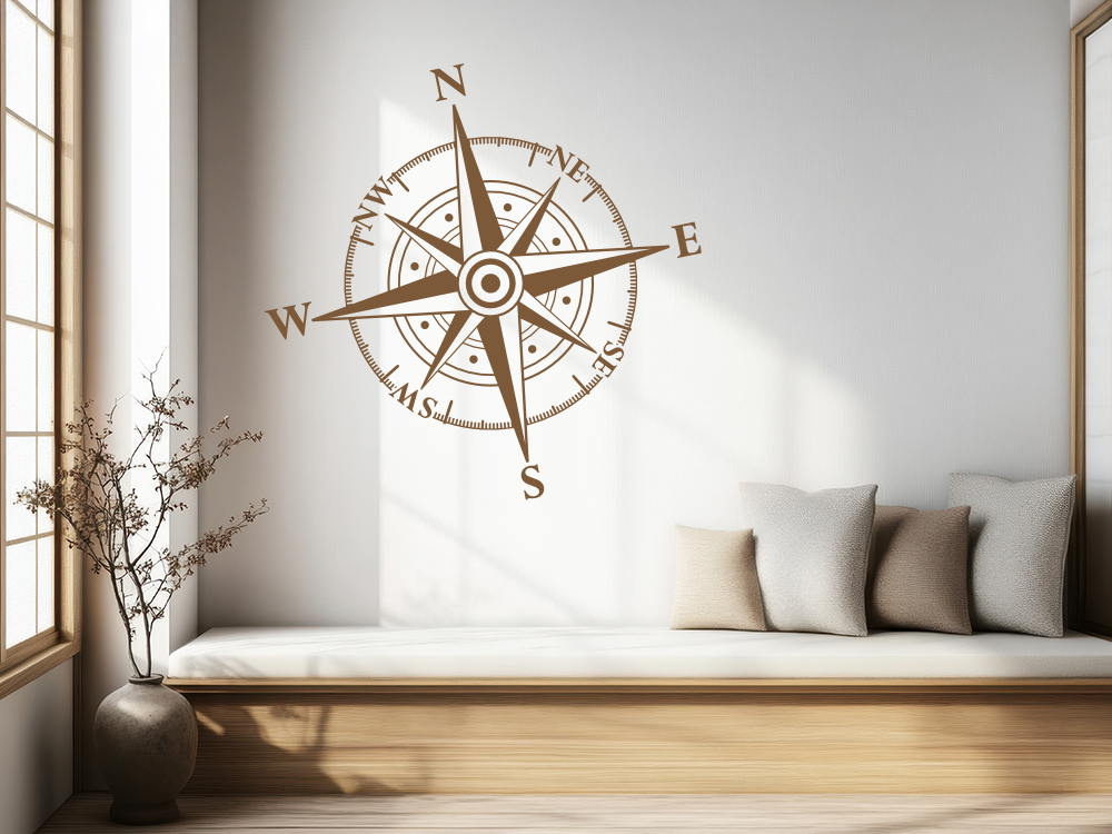 Wenn Sie in Sachen Wohnraumgestaltung voll im Trend liegen möchten, dann setzen Sie doch auf dieses tolle Kompass Motiv als Aufkleber für die Wand. Das Wandtattoo lässt sich schnell und einfach auch ohne Vorkenntnisse anbringen und verleiht Ihrem Zuhause das gewisse Etwas. Das Wanddesign mit angesagter Windrose fertigen wir für Sie innerhalb kurzer Zeit aus einer hochwertigen Klebefolie. Zögern Sie nicht und setzen Sie lang gehegte Wohnträume in die Realität um.
