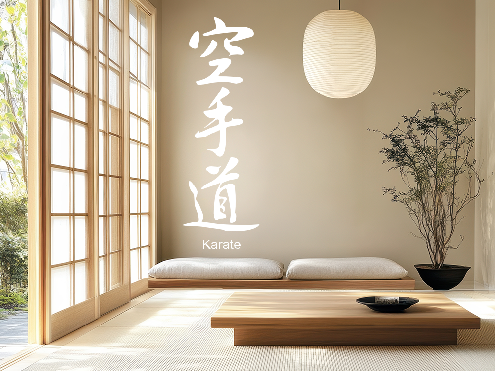 Das japanische Zeichen für Karate mit deutscher Erklärung ist ein starkes Design, das eine leere Wand kraftvoll in Szene setzen kann. Mit diesem Wandtattoo kann ein ganzheitliches Wohnkonzept gefördert werden und ein prächtiges Ambiente entstehen. Ein schickes Motiv kann außerdem den gesamte Raum mit Leben und Stärke durchfluten und für ein wohnliches Ambiente sorgen. Der Wandsticker lässt sich schnell und einfach anbringen und sieht auf der Wand aus wie aufgemalt. Dank der erstklassigen Klebefolie ist lang anhaltende Freude an dieser Wanddeko garantiert.