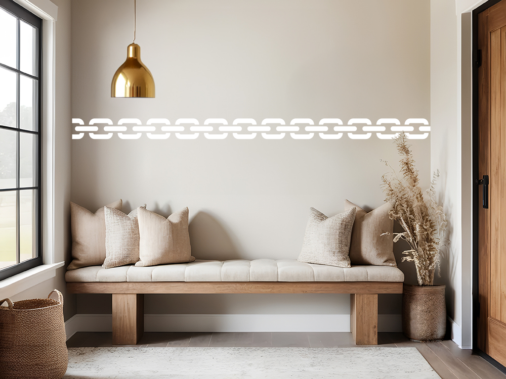 Wenn Sie seit Langem auf der Suche nach einer einzigartigen Wanddekoration sind, die Ihre ganz persönlichen Wünsche wiederspiegelt, dann kann Ihnen diese Kettenbordüre empfohlen werden. Zeigen Sie den Zusammenhalt in Ihrer Familie auch nach außen mit Hilfe des Wandtattoos als Kette. Sagen Sie tristen Wänden Lebewohl und läuten Sie eine neue Ära der Dekoration in Ihren vier Wänden ein. Die Ketten als Wandaufkleber können Sie in einer zu Ihrer Einrichtung passenden Farbe wählen und schon mit wenigen Handgriffen etwa an die Wohnzimmerwand aufbringen. Verschwenden Sie keine Zeit beim langatmigen Umgestalten Ihrer Räumlichkeiten, sondern entscheiden Sie sich für einen Kettenaufkleber von lifestyle-decor.de. Die übrig gebliebene Zeit verbringen Sie lieber mit Ihrer Familie.