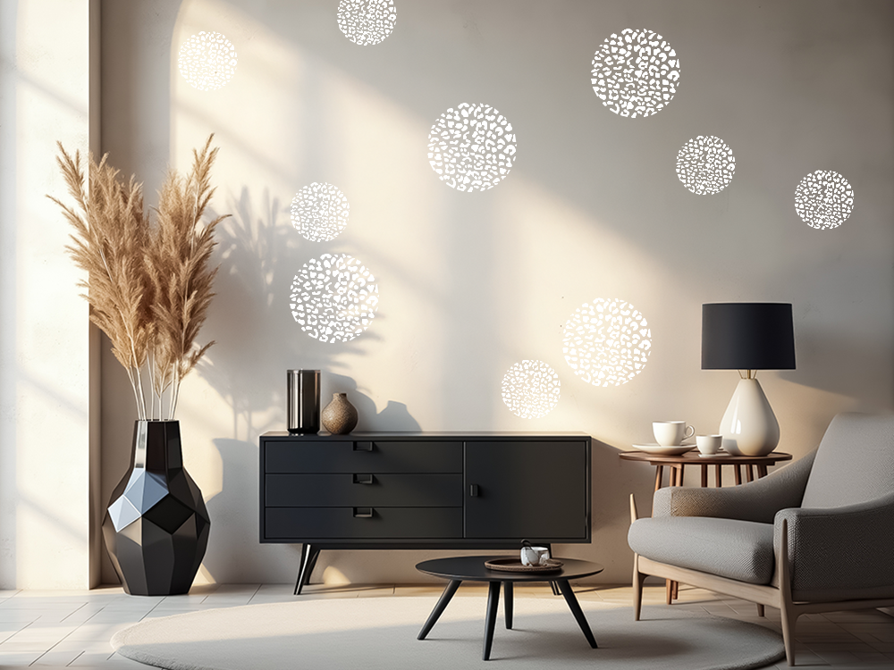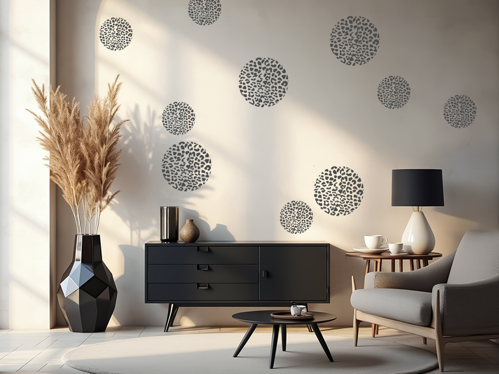 Wandtattoos im Leopardenmuster sind nicht erst seit gestern angesagt. Mit diesem Wandaufkleber als Leopardenkreise bekommt das Dekorieren mit Leopardenmuster allerdings eine völlig neue Ebene. Setzen Sie ein tolles Highlight, dass man so wohl kaum anderweitig erwerben kann. Kombinieren Sie das auffällige Leopardenmuster am besten mit schlichten Formen und Farben, sodass ein absolut umwerfendes Raumklima entsteht. Wählen Sie dafür das Wandtattoo in einer für Sie passenden Farbe aus, denn dadurch kann ein rundes Bild entstehen, das Sie und andere Betrachter in seinen Bann ziehen wird. Mit Wandtattoos von lifestyle-decor.de lassen sich so manche Wohnträume umsetzen.
