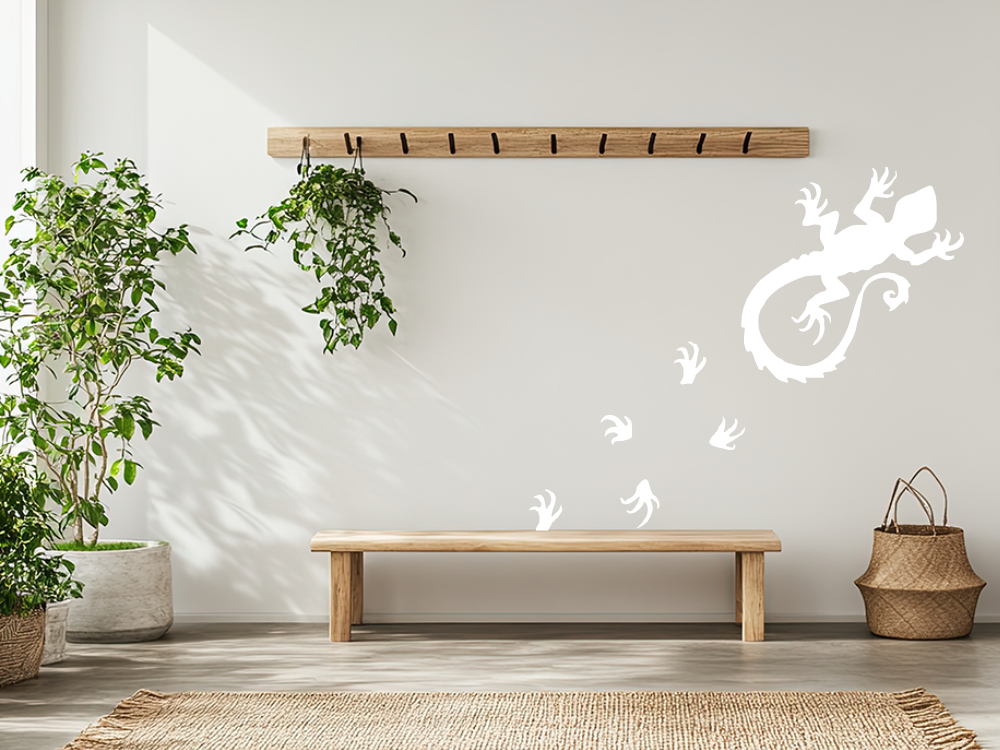 Der Wandaufkleber mit Echse kann Ihre Räumlichkeiten optisch aufwerten. Holen Sie sich einen Hauch der südlichen Länder nach Hause und empfangen Sie Ihre Gäste mit diesem tollen Wandaufkleber im Eingangsbereich. Mit der passenden Dekoration und grundlegenden Wandfarbe können Sie damit sogar einen Eingangsbereich zu einer Oase werden lassen. Kombinieren Sie etwa sommerliche Farben wie Gelb, Rot und Orange oder mediterrane Töne wie Blau, Grün und Ocker. Lassen Sie eine völlig neue Stimmung entstehen und setzen Sie ganz gezielt ein Highlight an Ihren Wänden. Diese kleine Echse kann Ihnen mit Sicherheit dabei helfen.
