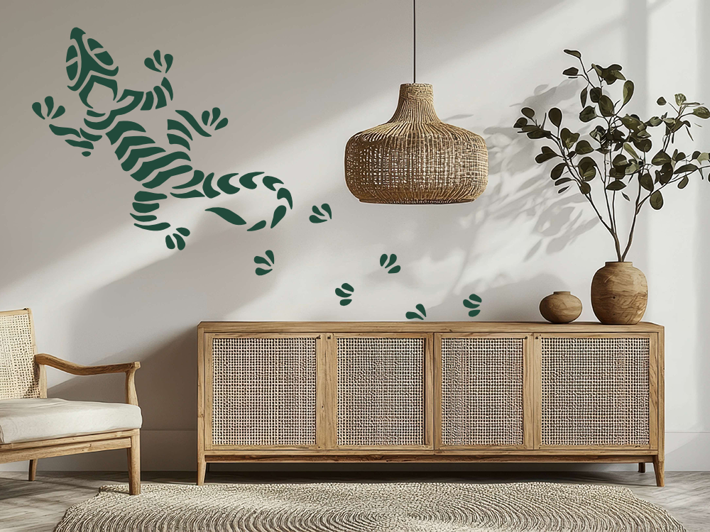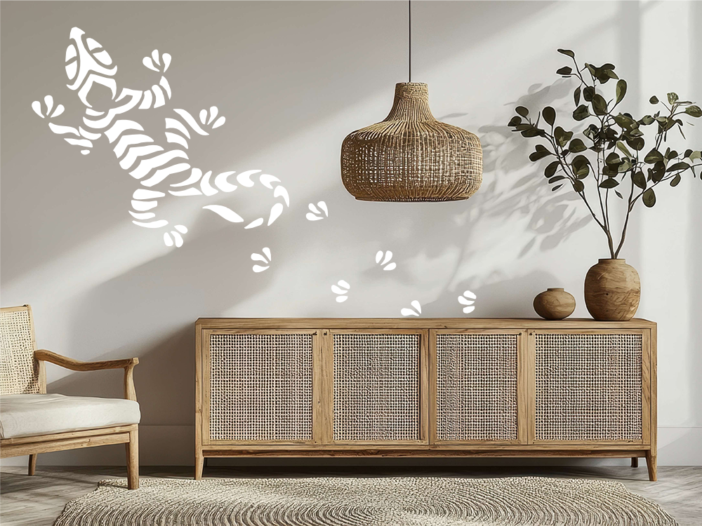 Diese exotische Echse kann sowohl als hochwertiges Wandtattoo als auch in Form einer Schablone zum Ausmalen von Ihnen gewählt werden. Wählen Sie den Wandsticker von lifestyle-decor.de einfach in der gewünschten Art aus und innerhalb kürzester Zeit erhalten Sie Ihre neue Gestaltungsidee. Sie sind unsicher, was Ihre handwerklichen Fähigkeiten angeht? Die Wandsticker aus dem Hause lifestyle-decor.de lassen sich mit nur wenigen Handgriffen an einer Wand anbringen, sodass eine Renovierung oder das Umdekorieren zum Kinderspiel wird.