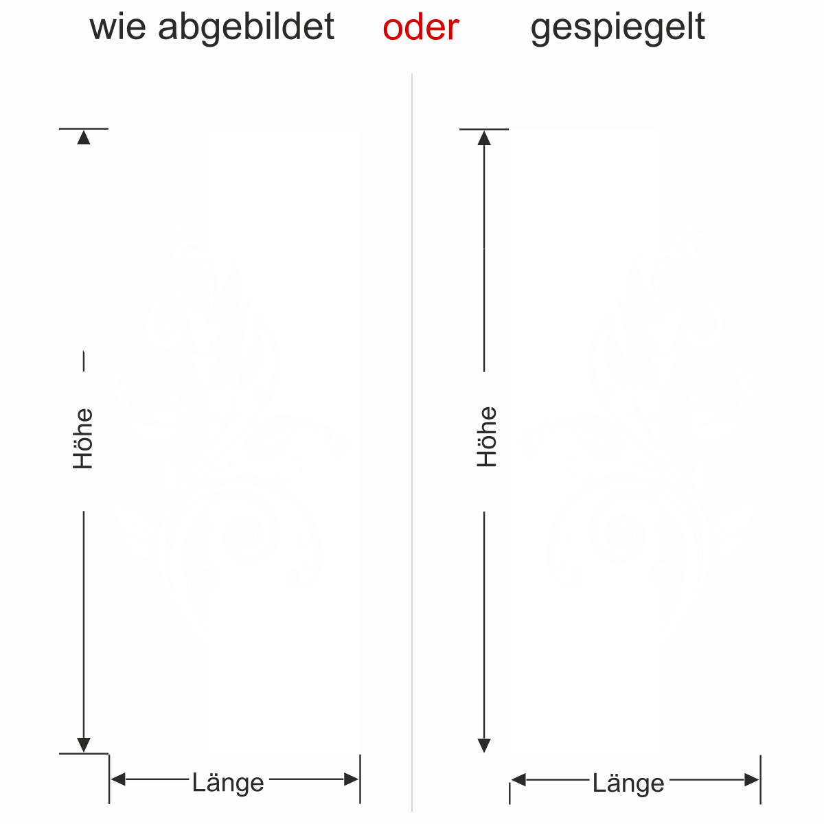 Tragen Sie eines der beiden Maße in der Bestellmaske in die Kästchen „Länge“ oder „Höhe“ ein. Das zweite Maß errechnet sich automatisch proportional, um ein Verziehen Ihres Motives zu verhindern.