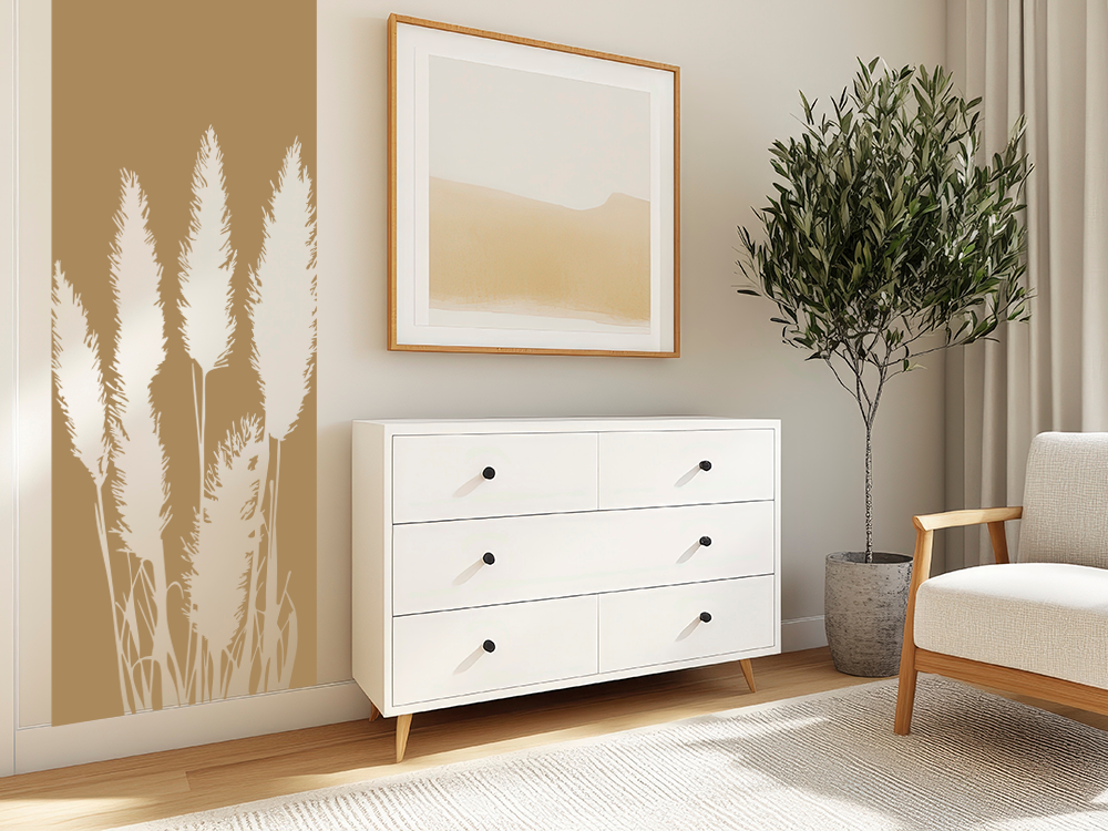 Das amerikanische Pampasgras als Banner zum Aufkleben auf Ihre Wand ist eine tolle Dekorationsidee für Ihren Wohnbereich. Die mediterrane Pflanze verleiht Ihrem Zuhause ein besonderes Flair zum Wohlfühlen. Sie gehört der Familie der Süßgräser an und liebt warme Orte mit viel Sonne. Leider fällt es oft schwer, die optimalen Bedingungen für eine Pflanze wie diese zu realisieren. Doch eine dekorative Alternative zur echten Pflanze ist dieses Wandbanner Pampasgras Motiv. So können Sie das ganze Jahr über die sommerliche Atmosphäre genießen.
