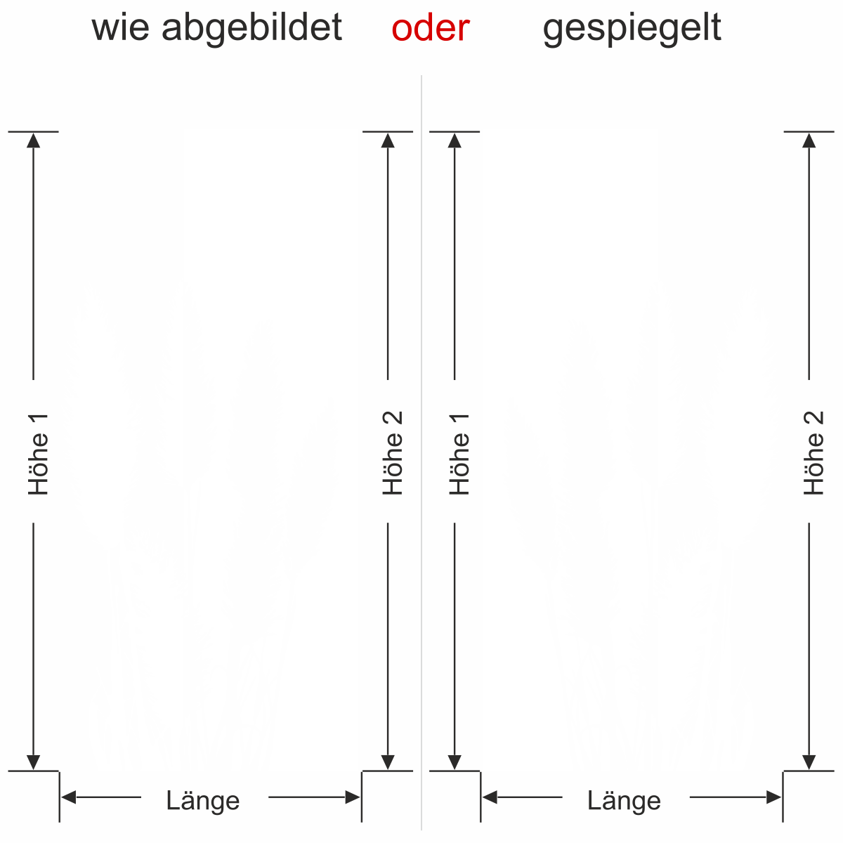Tragen Sie eines der beiden Maße in der Bestellmaske in die Kästchen „Länge“ oder „Höhe“ ein. Das zweite Maß errechnet sich automatisch proportional, um ein Verziehen Ihres Motives zu verhindern.